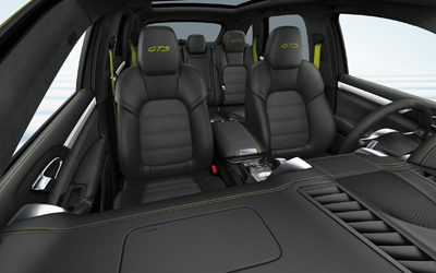 Отличительной особенностью интерьера является спортивная элегантность. В серийной комплектации все GTS имеют кожаный салон с отделкой отдельных элементов алькантарой. В серийную комплектацию нового Cayenne GTS входят также спортивные сиденья с восьмипозиционной регулировкой.